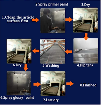 Hydro dipping drying equipment is used for drying out the dipped items, there are two steps of drying during the water transfer printing process as below: